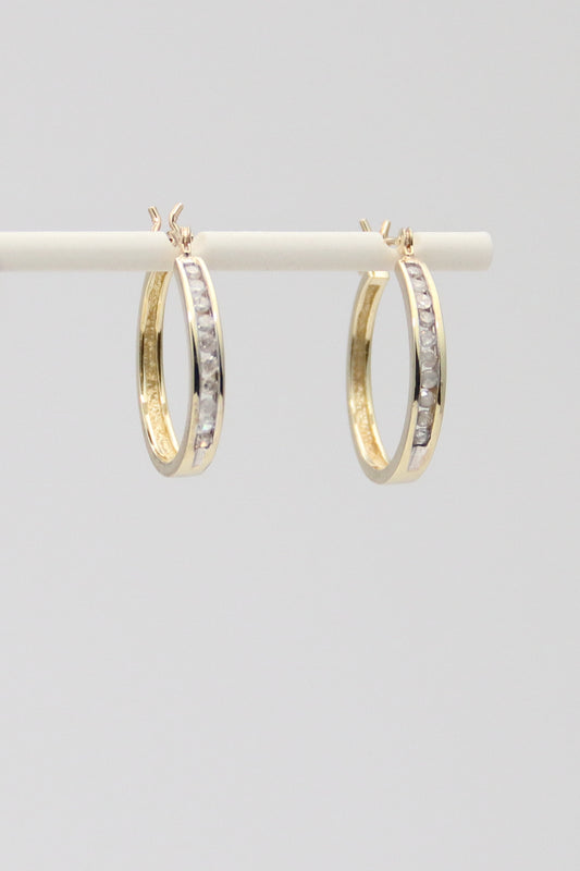 14K Yellow Gold Huggie Hoop CZ Earrings