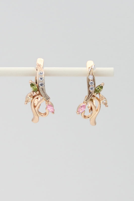 14K Rose Gold Multicolored Glass Earrings