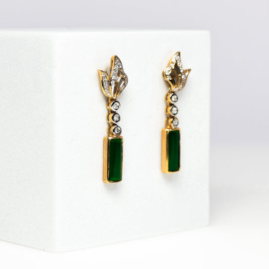 18K Yellow Gold Earrings with Diamonds and Green Stones