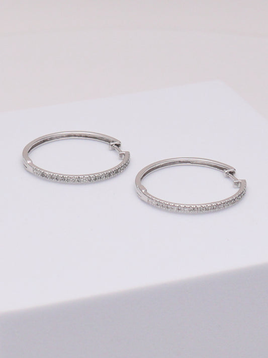 10k White Gold Diamond Hoops