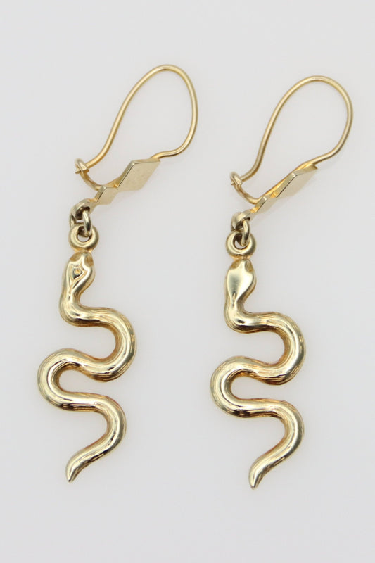 14K Yellow Gold Snake Earrings