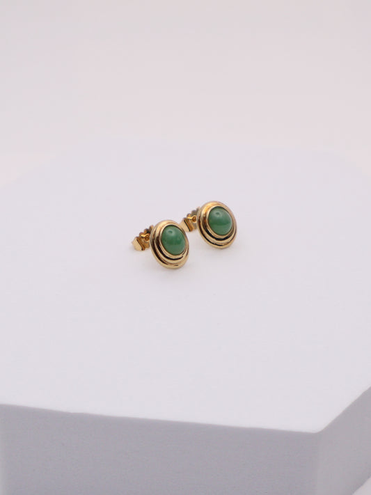 18k Gold Oval Jade Earrings