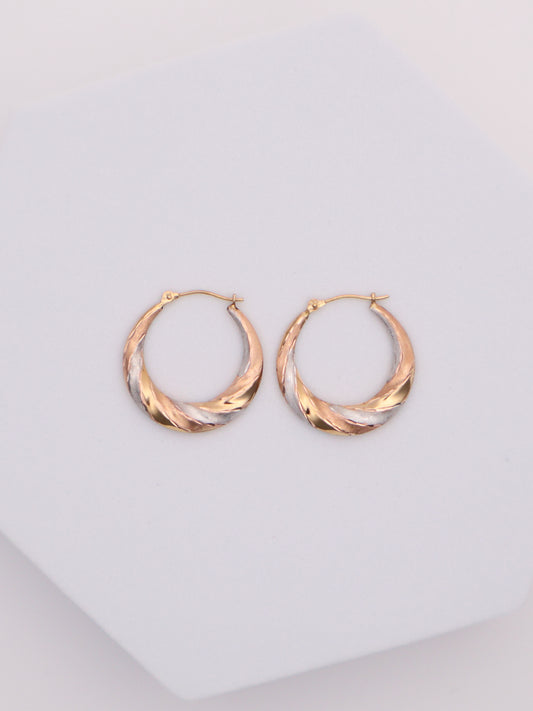 14k Tri-Color Medium Hoop Earrings