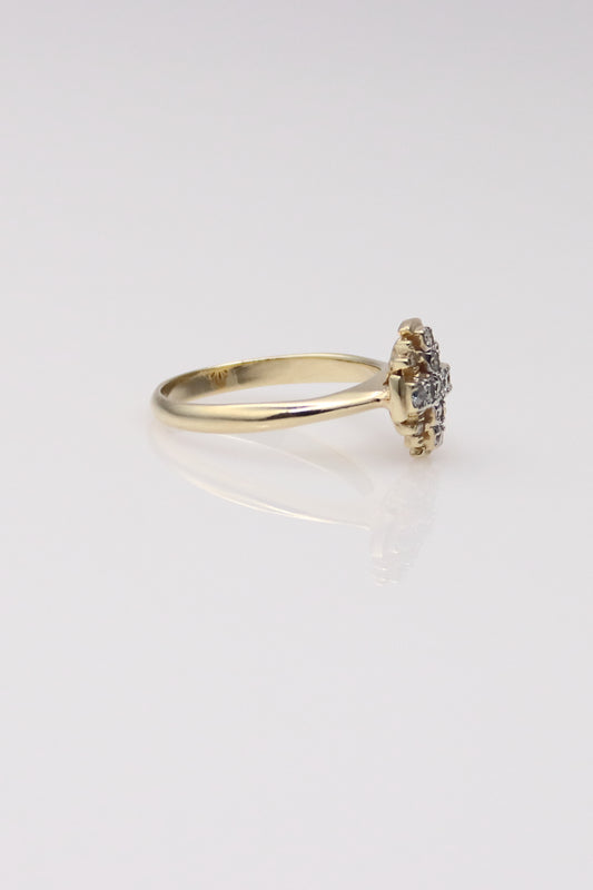 14K Yellow Gold Diamond Cross Ring