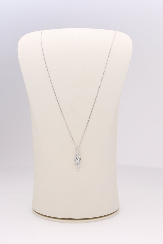 14K White Gold Waved Diamond Pendant Necklace