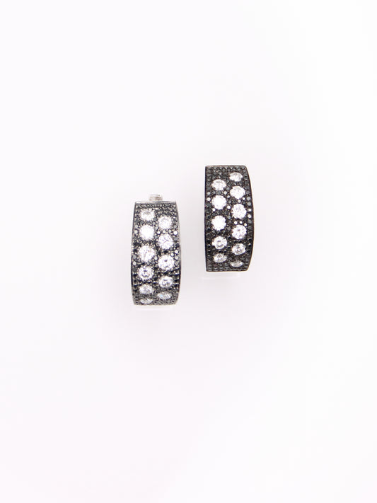 14K White Gold Black and White Diamond Huggies