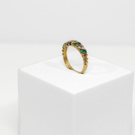 18K Yellow Gold Earrings with Diamonds and Green Stones