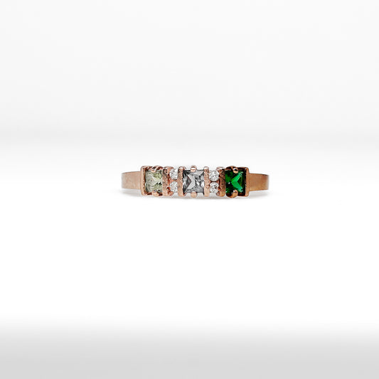 10K Rose Gold Diamond Ring with Multicolored Stones