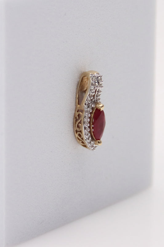 14K Yellow Gold Pink Topaz and Diamond Pendant
