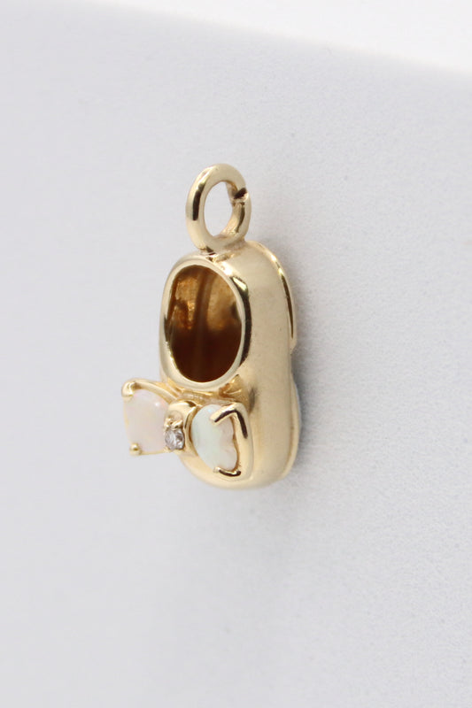 14K Yellow Gold Opal and Diamond Slipper Pendant