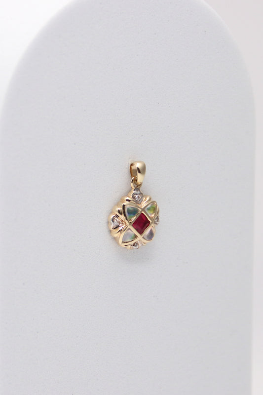 14K Yellow Gold Multi Stone and Diamond Pendant