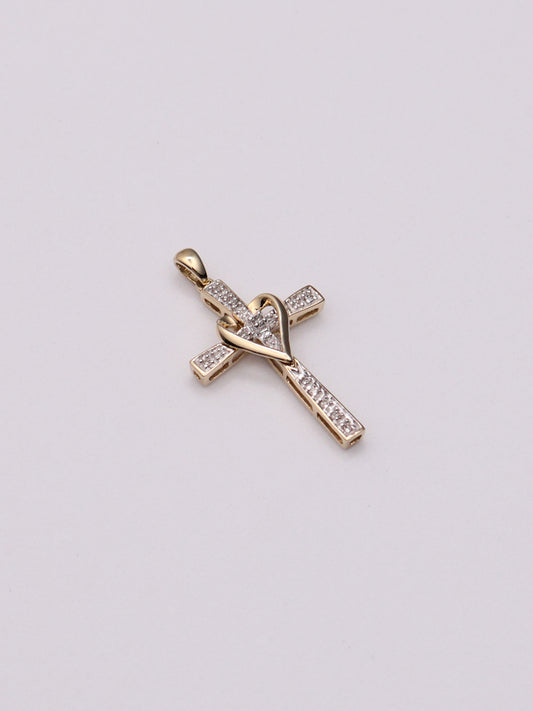 10k Diamond Heart Cross