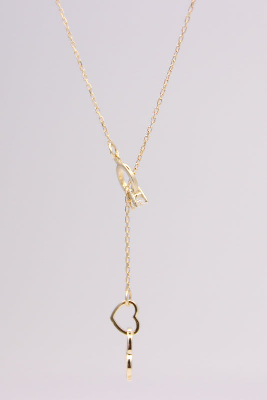 Double Heart Drop Pendant Cable Necklace