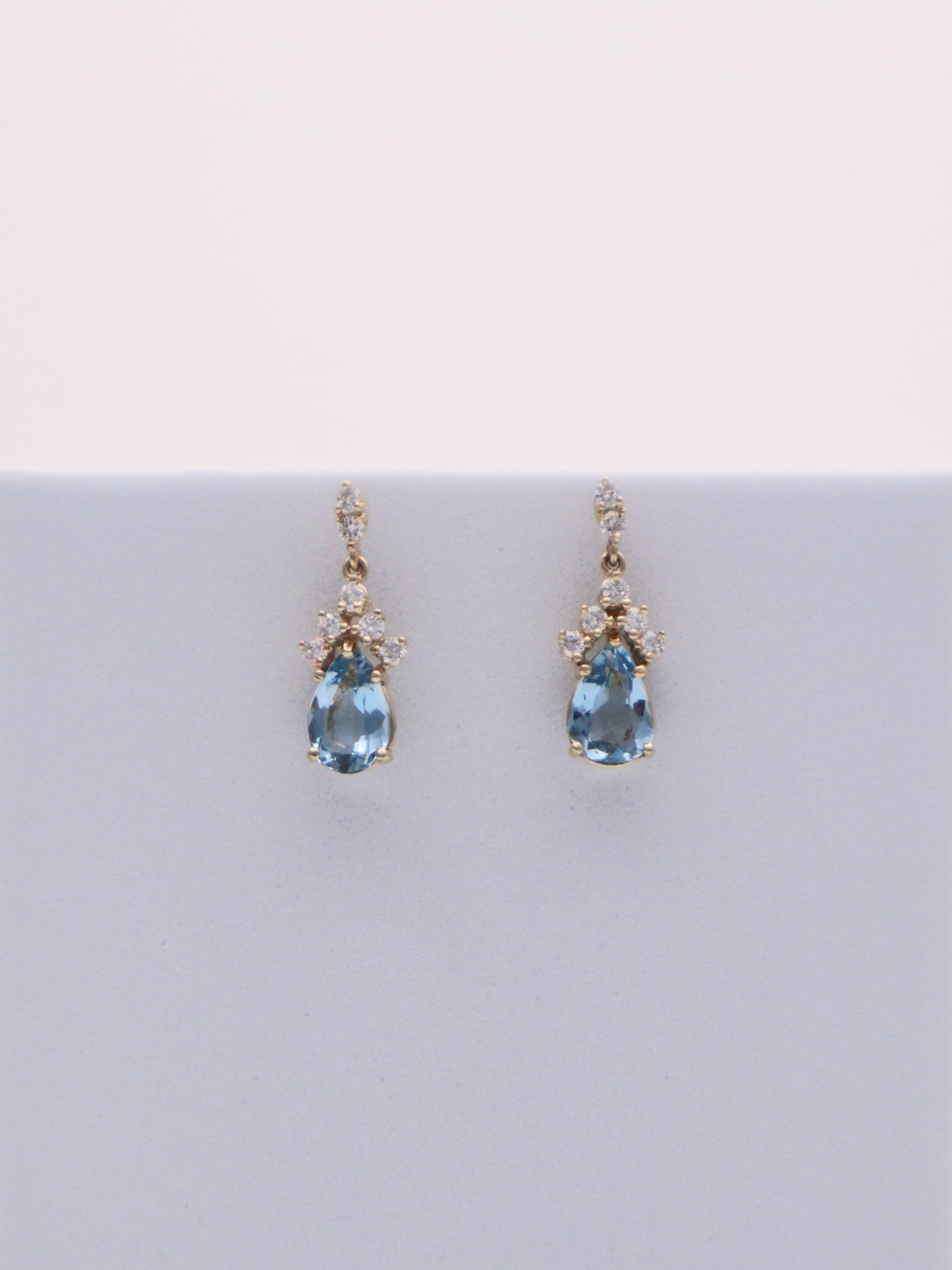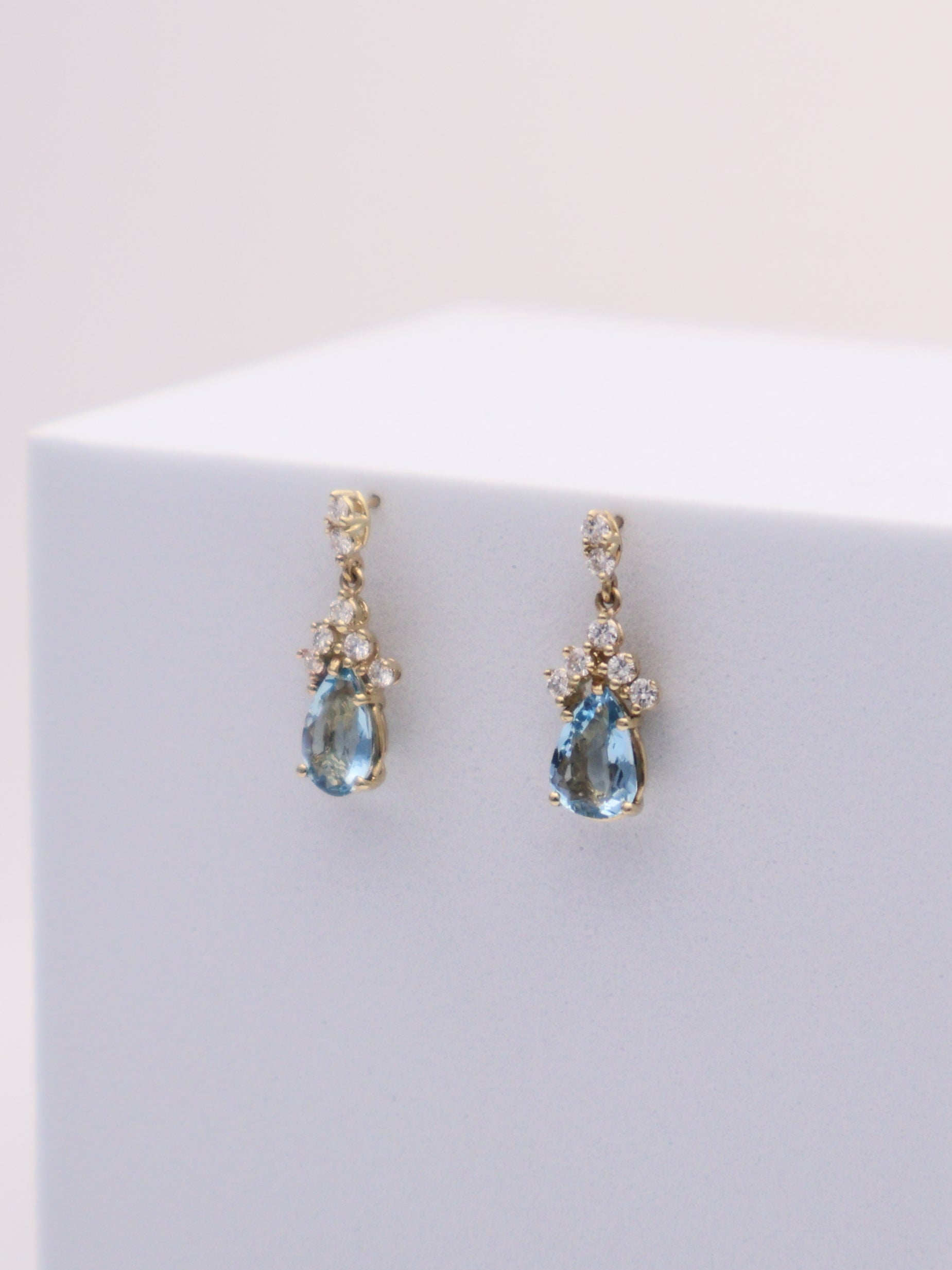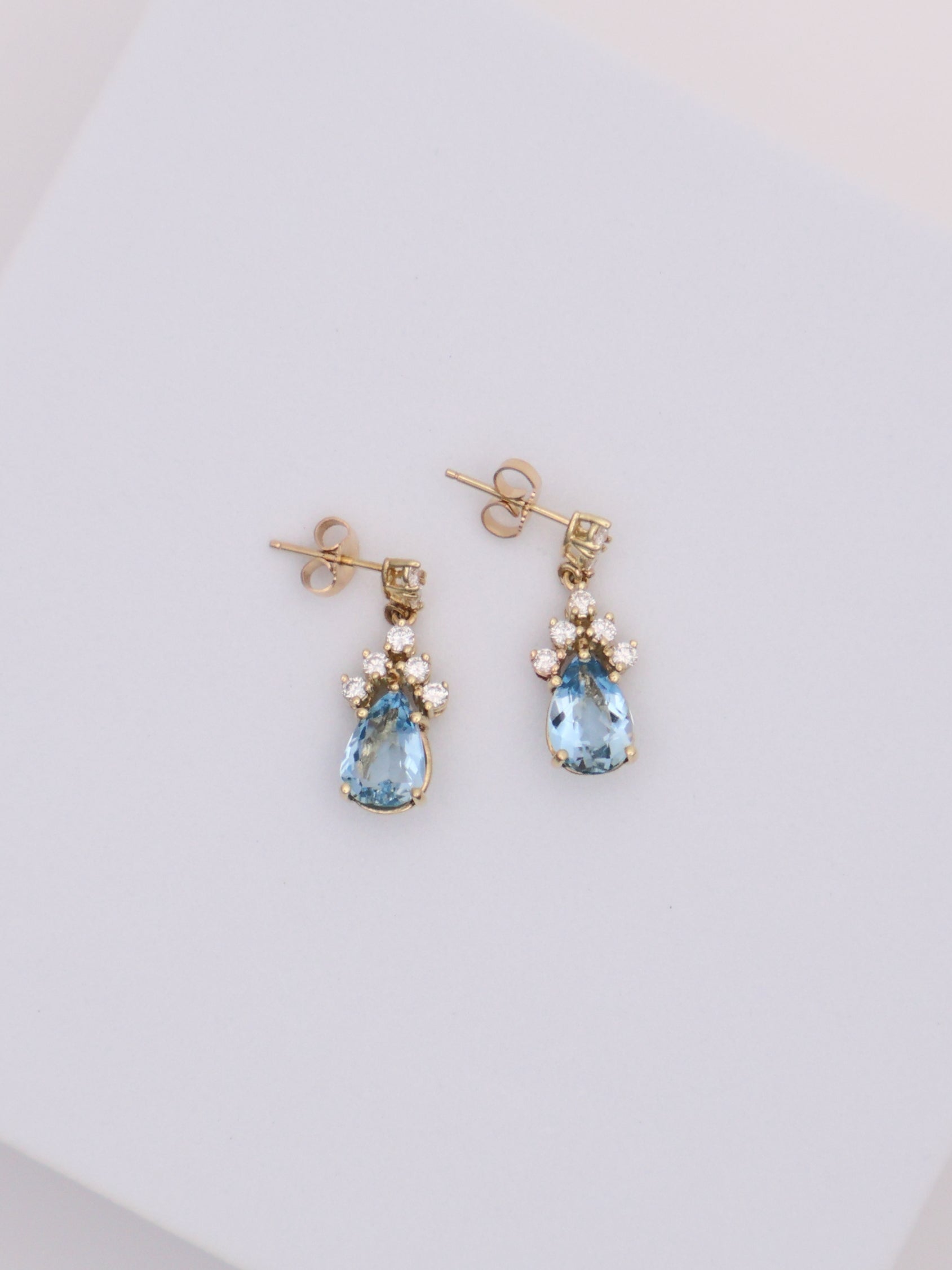 14k Yellow Gold Aquamarine & Diamond Earrings