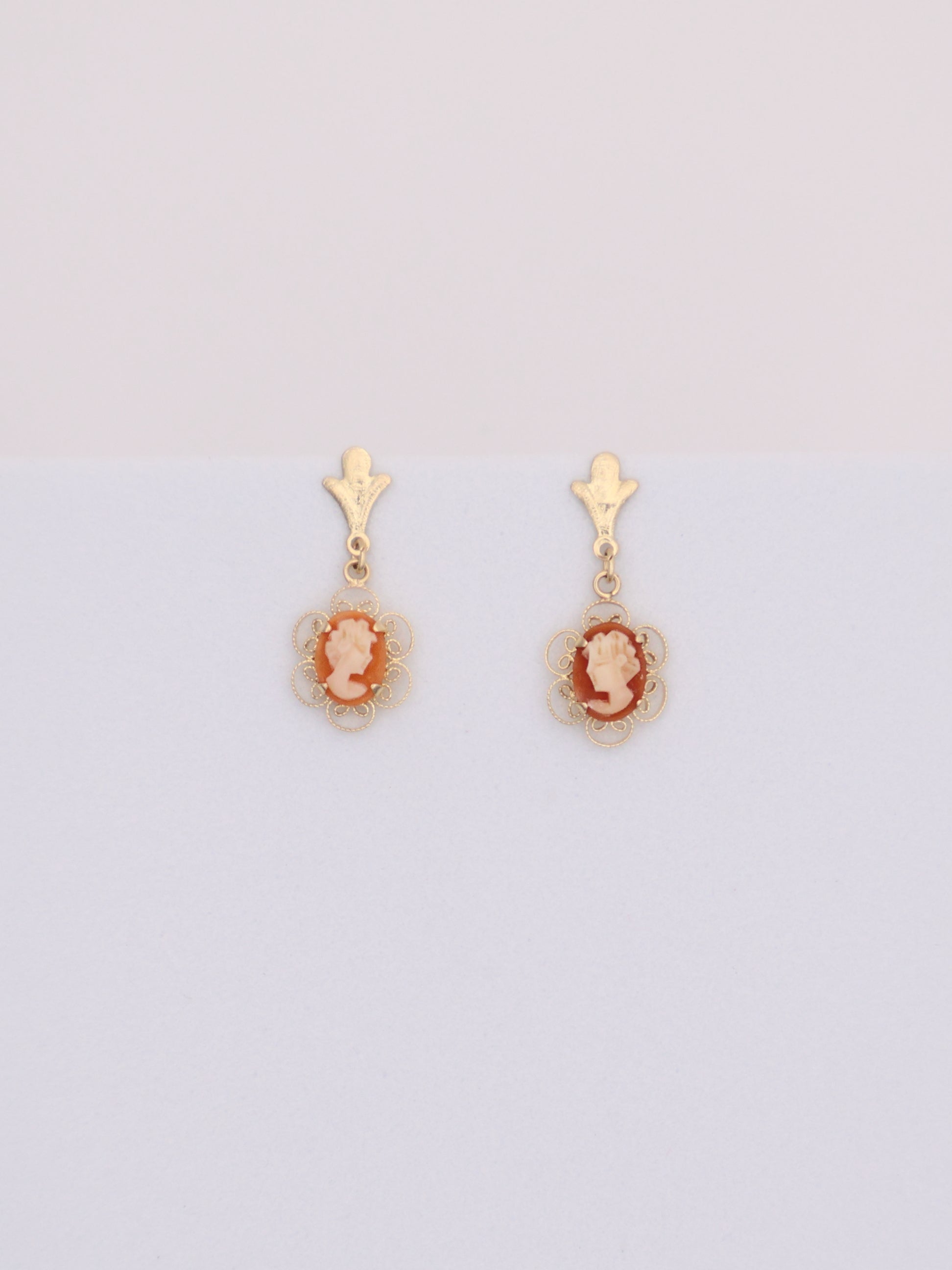 14k Gold Orange Cameo Earrings