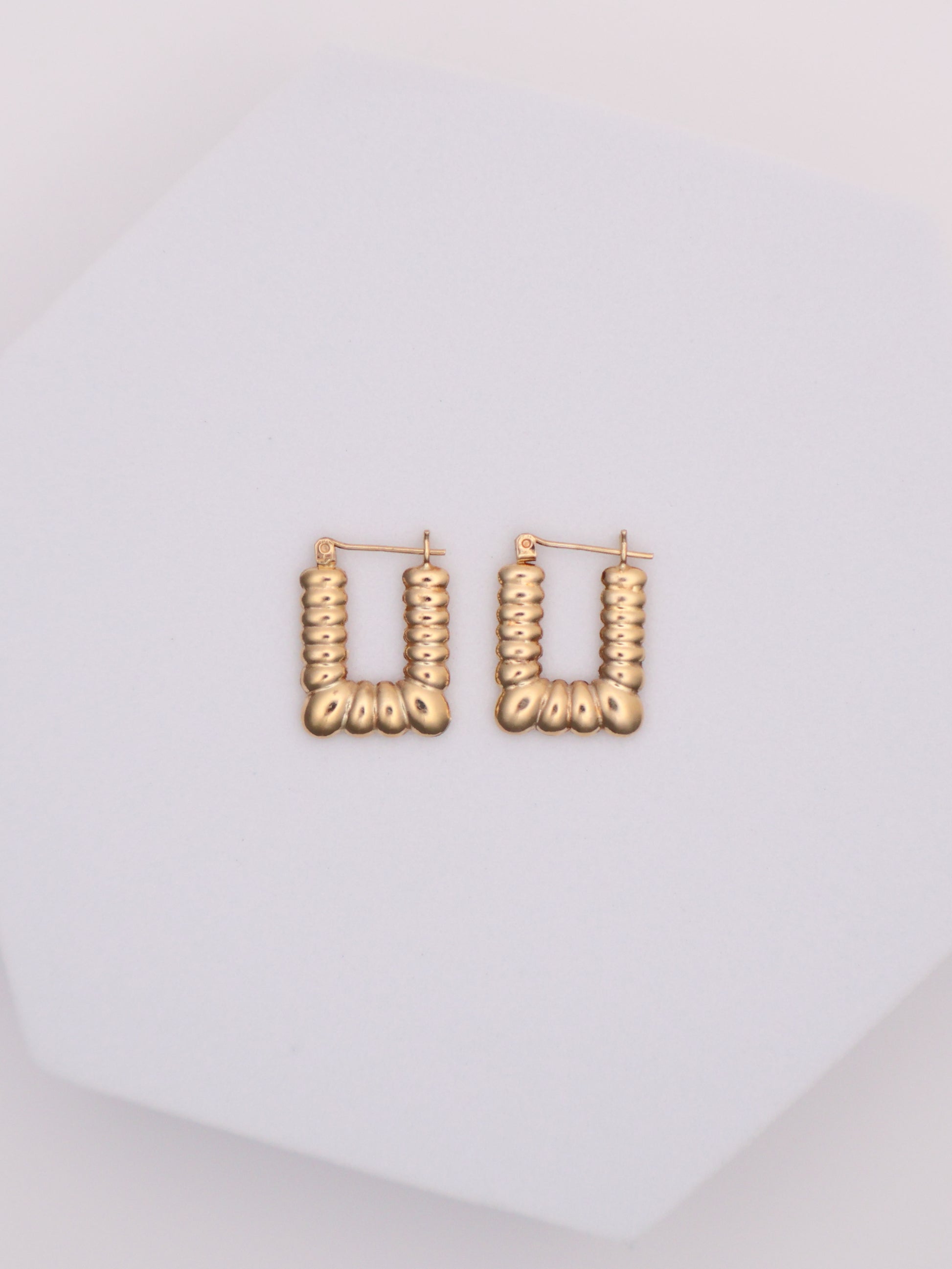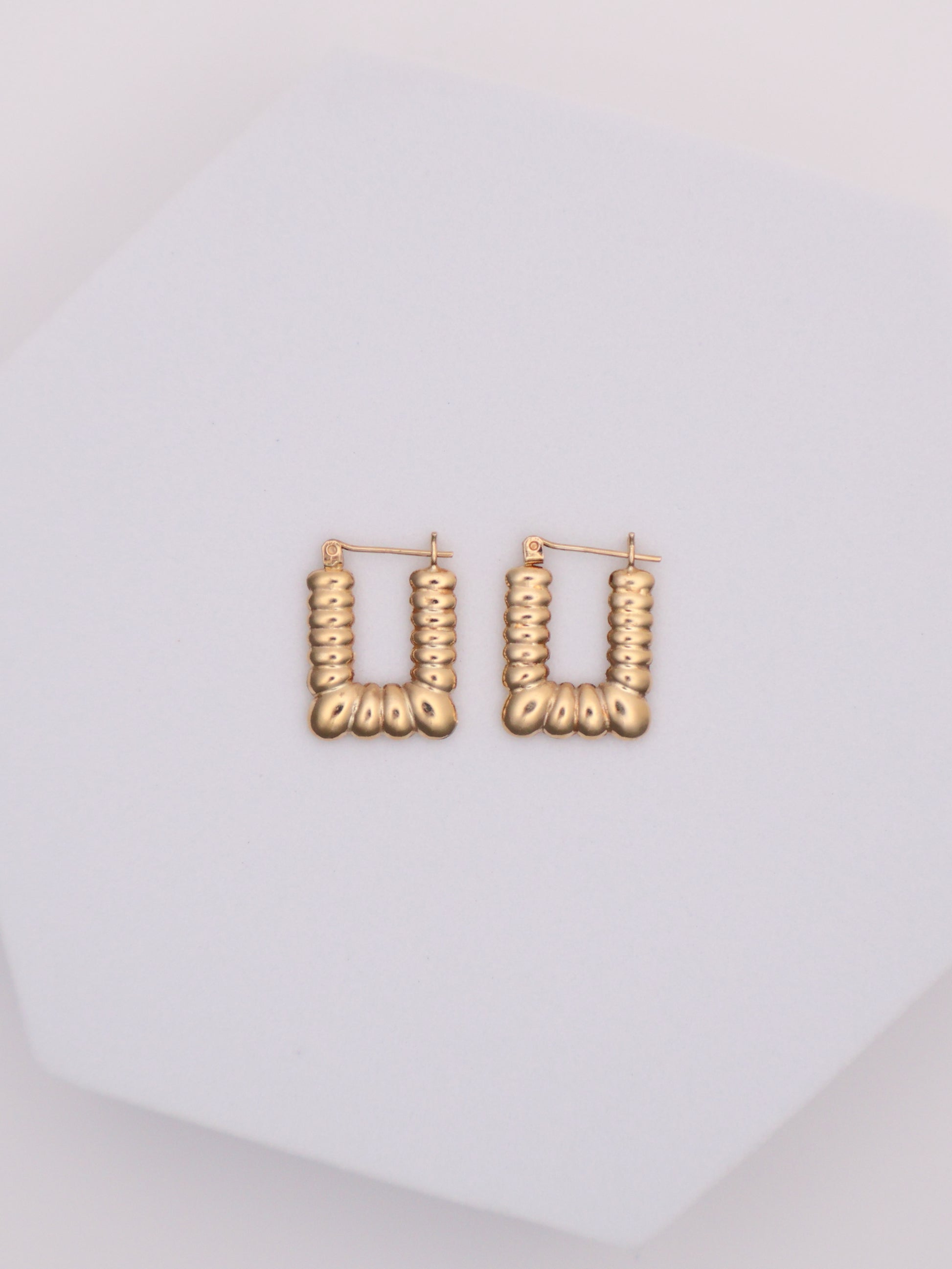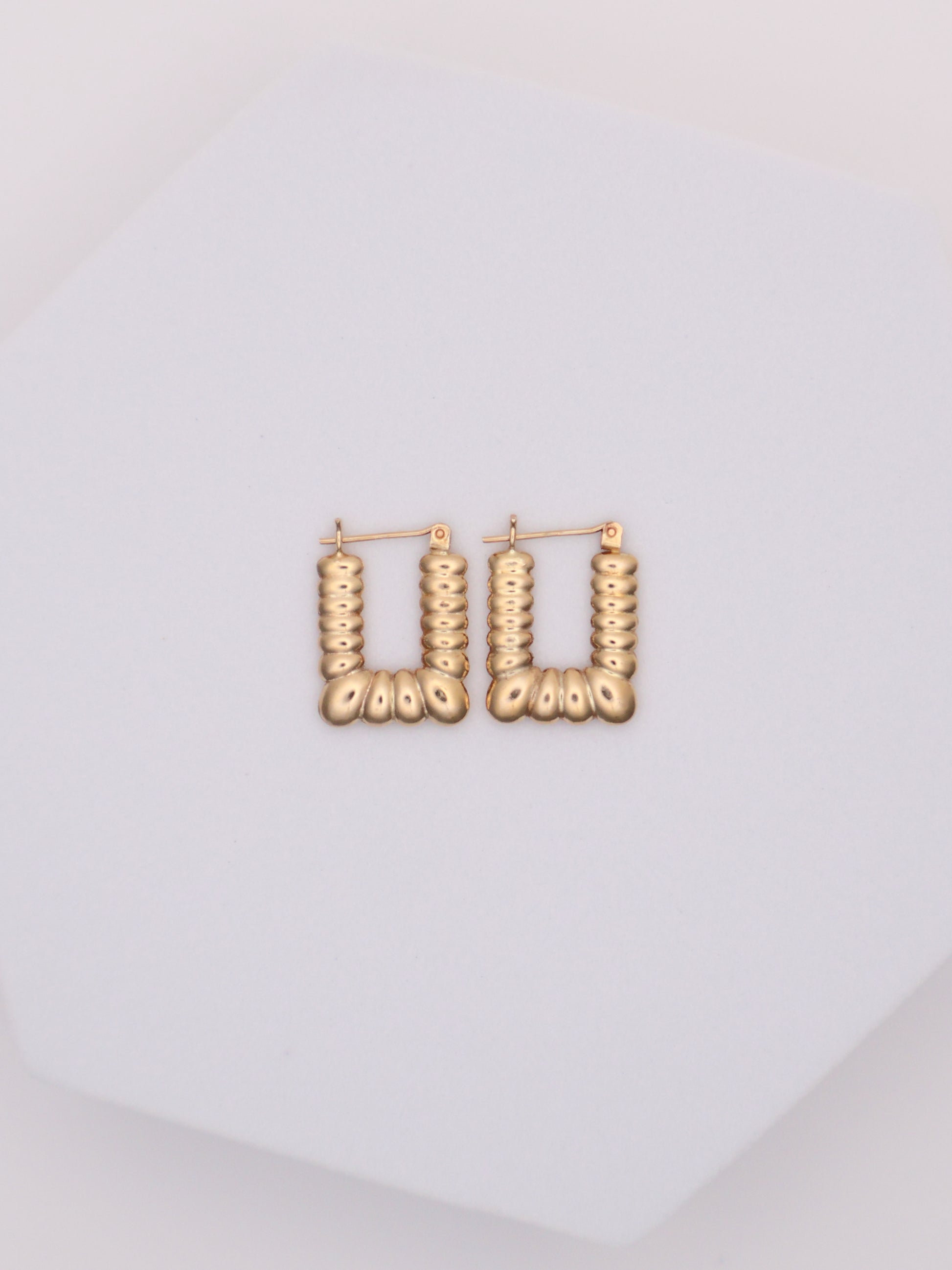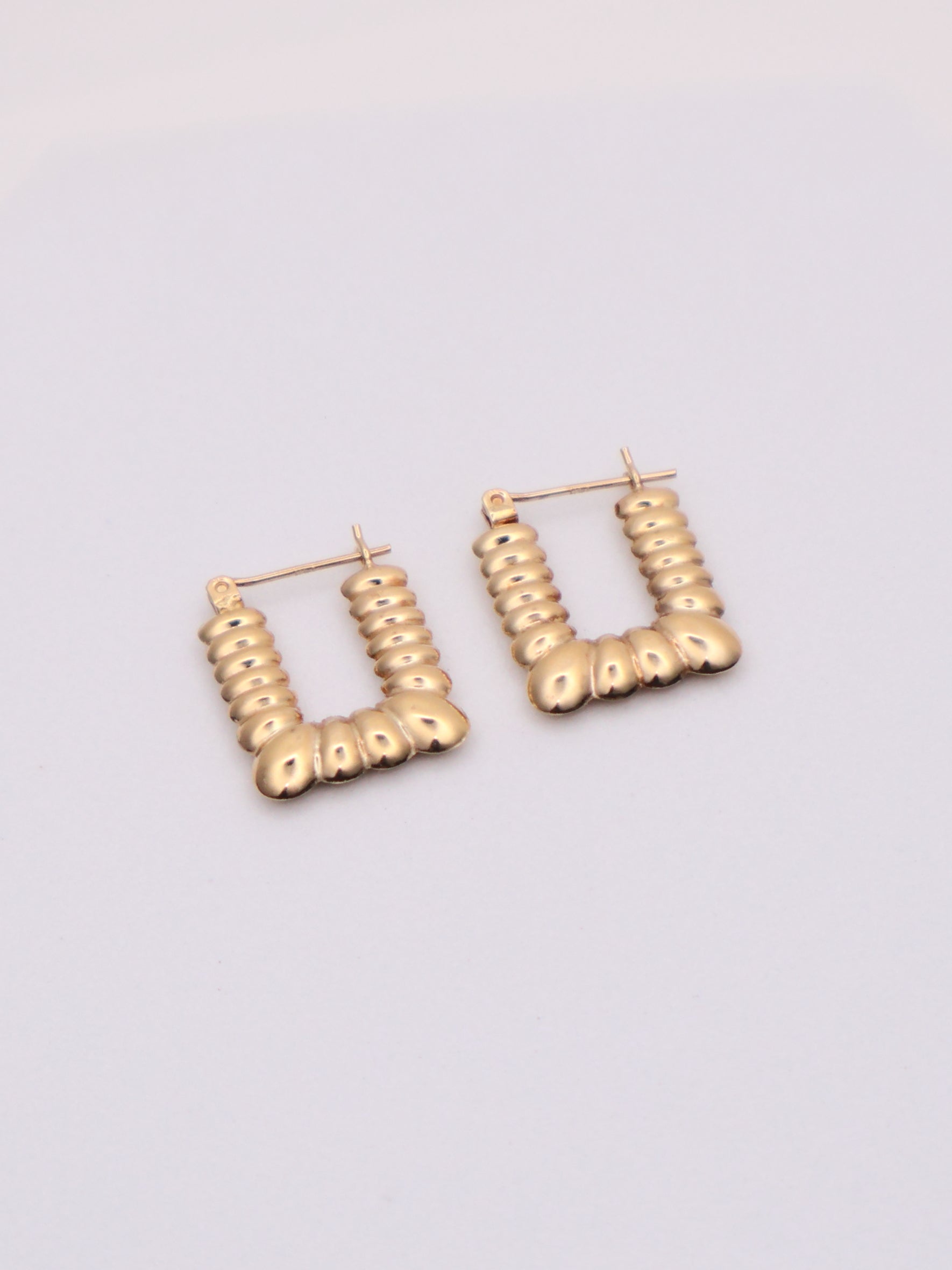 14k Yellow Gold Textured Rectangle Hoop Earrings