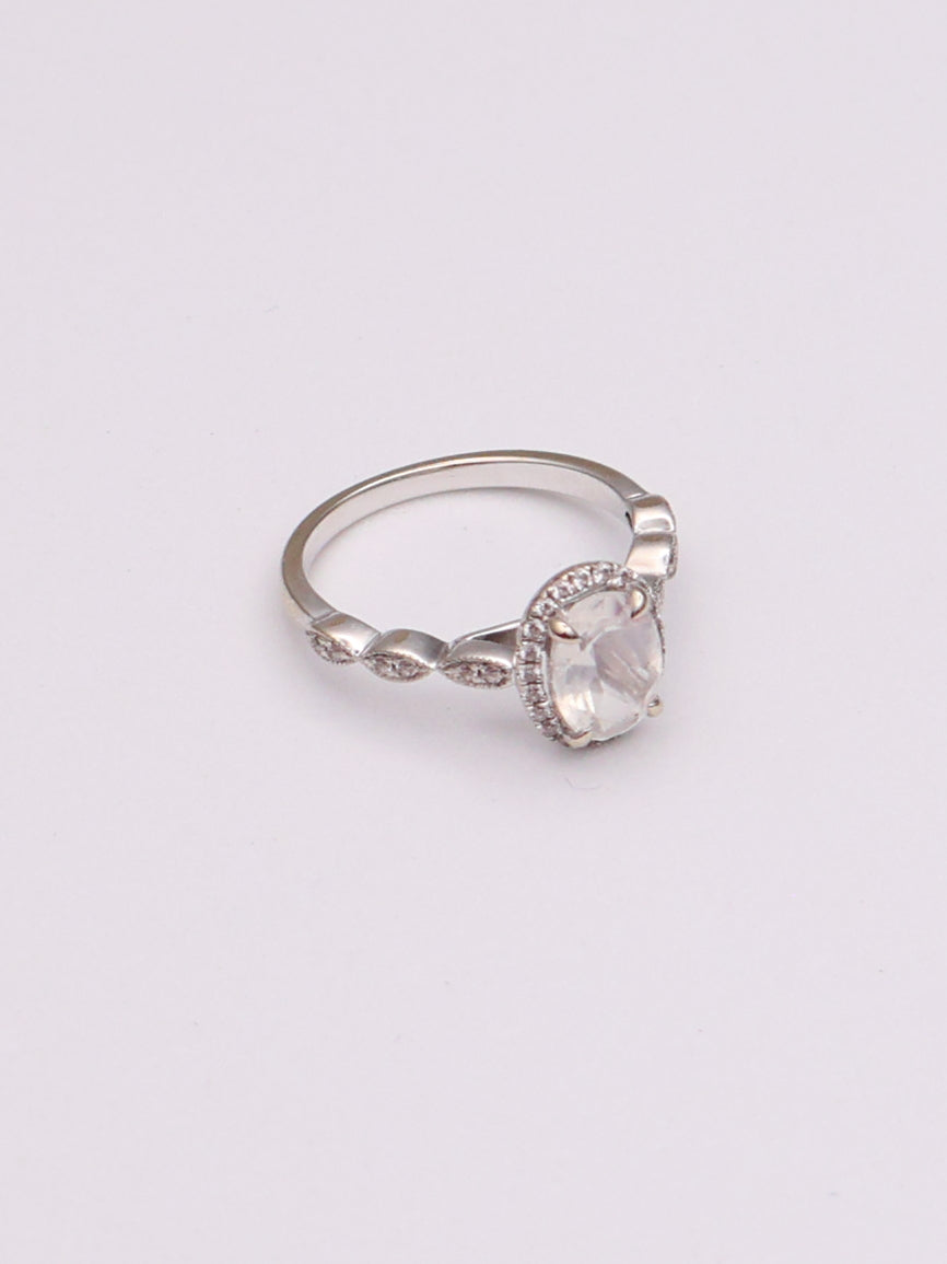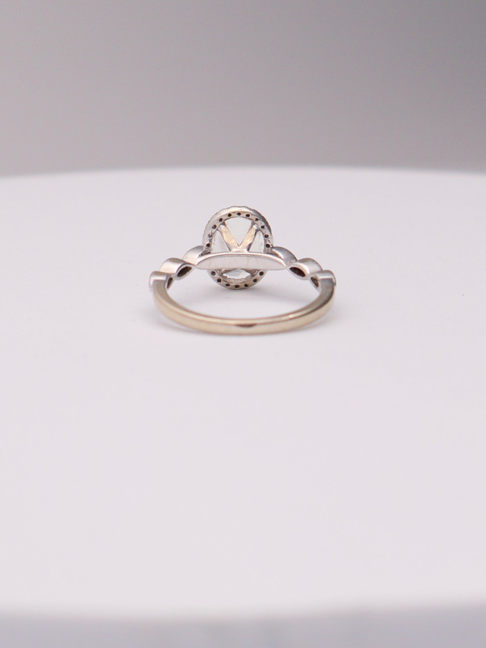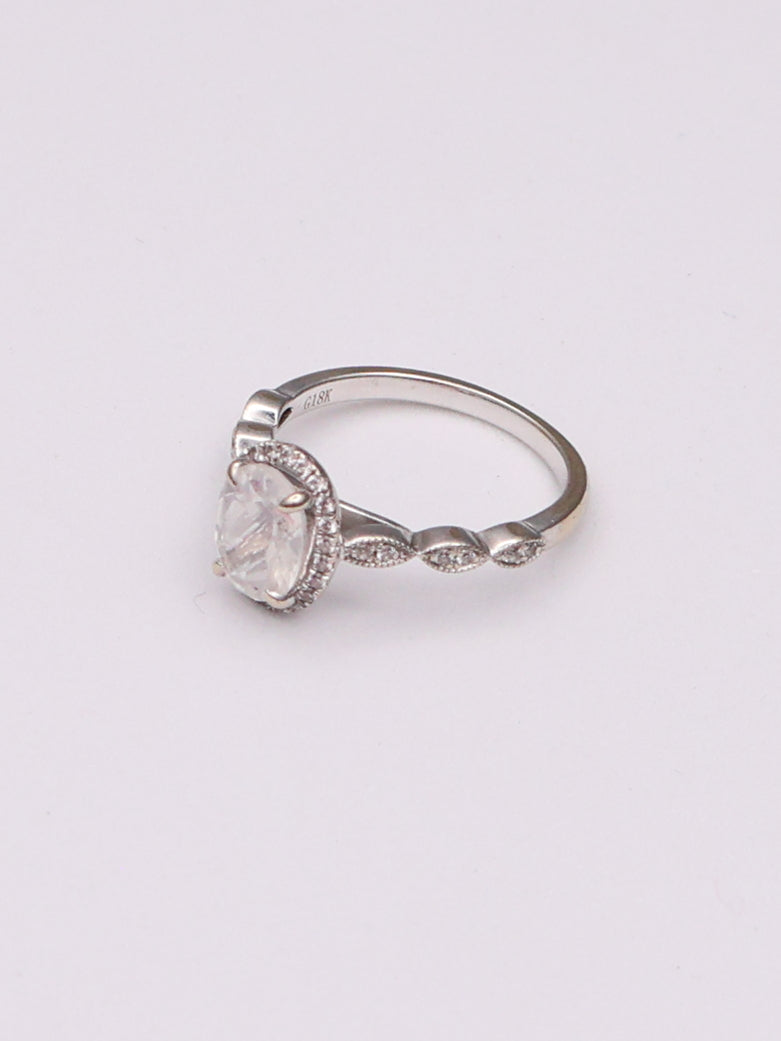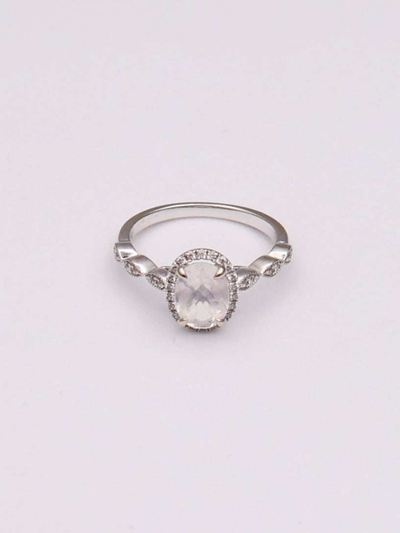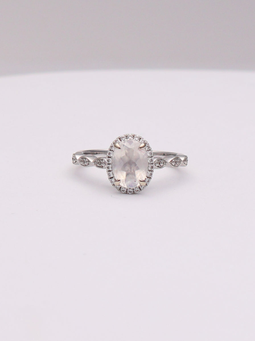 18k Oval Moonstone Ring with Diamond Halo & Accents